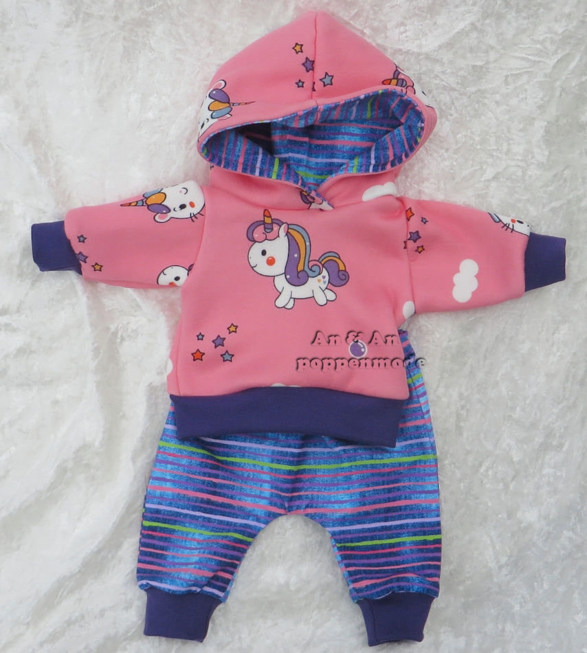 Een lekkere warme hoodie met leuke unicorn print.Compleet met leuke gestreepte broek. De stof van de broek komt terug in de capuchon